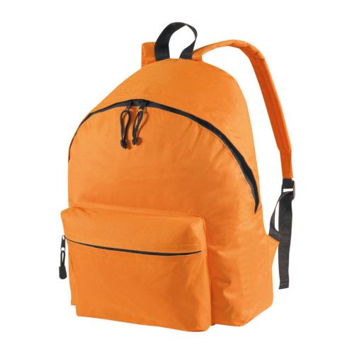 Large sturdy polyester backpack with large front compartment, padded shoulder straps, a carrying strap and a filling capacity of 17 liters.