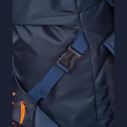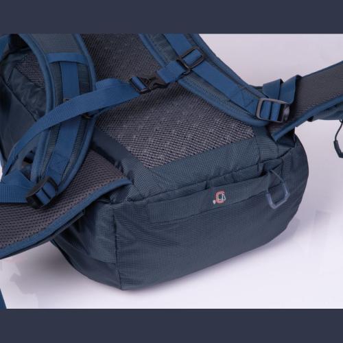 Sturdy hiking backpack with ergonomic hip belt and 25-liter capacity made of PA, PES & EVA materials, it also has raincover pocket on the bottom and back cushion.