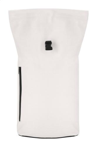 Soft PU leather rolltop backpack with buckle closure, padded laptop (15") compartment, padded back and shoulder straps.