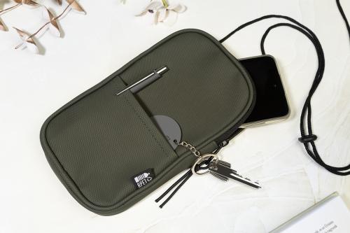 Waterproof RPET crossbody mobile phone bag with zipped main compartment, front pocket and adjustable lanyard. PU coated 600D RPET polyester, with distinctive RPET label.