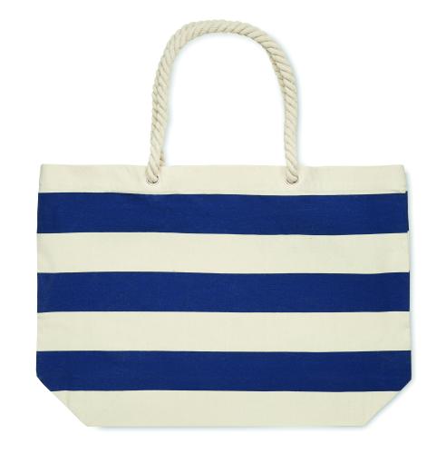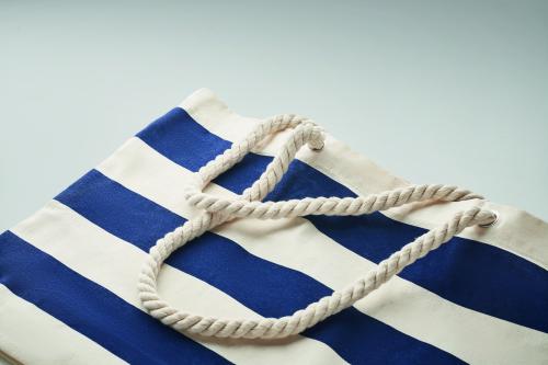 Striped beach or shopping bag in cotton with cord handle. 220 gr/m².