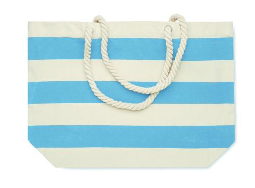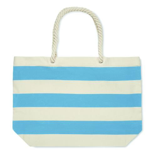 Striped beach or shopping bag in cotton with cord handle. 220 gr/m².