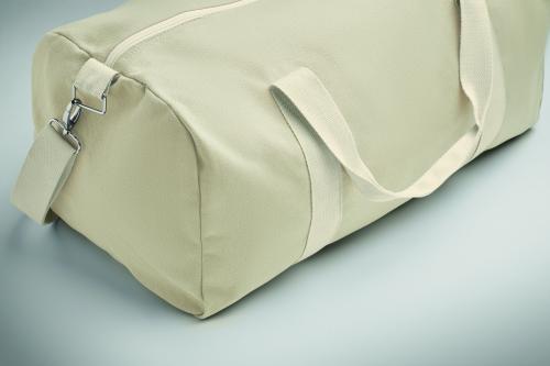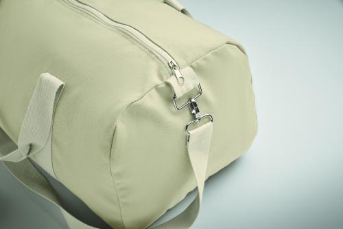 Duffle bag in recycled fabrics (60% recycled cotton, 40% recycled polyester) in 320 gr/m² with handle natural cotton webbing and an adjustable and detachable shoulder strap.