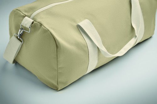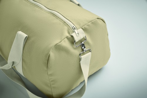 Duffle bag in recycled fabrics (60% recycled cotton, 40% recycled polyester) in 320 gr/m² with handle natural cotton webbing and an adjustable and detachable shoulder strap.