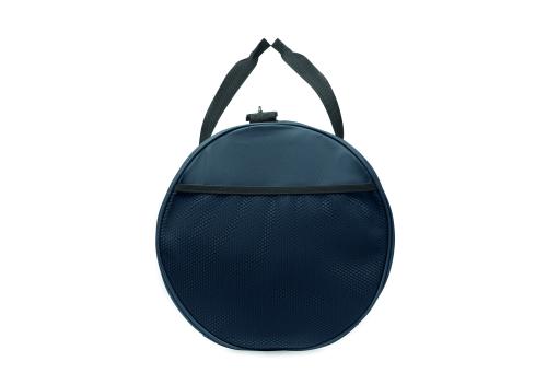 Duffle bag in 600D RPET polyester with PU coating. Front zippered pocket. Inside 210D RPET polyester lining. 1 side zippered compartment / 1 side mesh compartment. Zippered pocket inside.