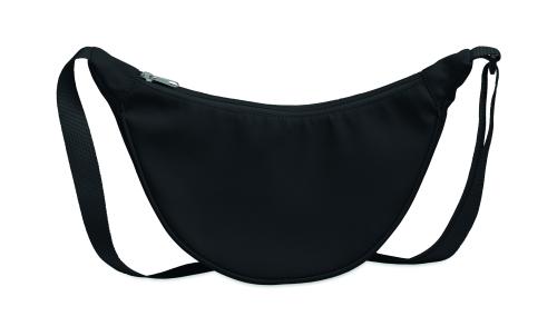 Half moon shaped cross body bag in 400D Oxford and 210D RPET lining. One main zippered pocket and 2 inside pockets.