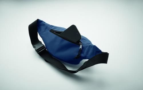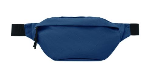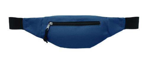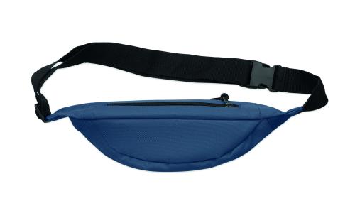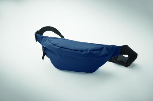Waist bag in 600D RPET polyester with zippered main compartment and hidden zippered back compartment.