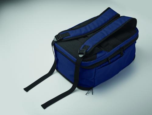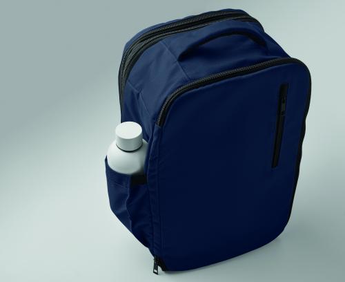 "Cabin-size carry-on extendable backpack made of 600D RPET polyester with 180o opening. Features a main compartment with two open sections, mesh division, padded 15"" laptop pocket, and luggage strap."