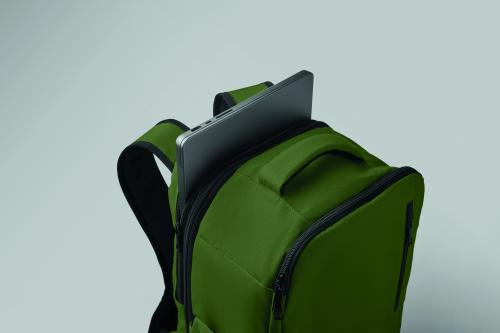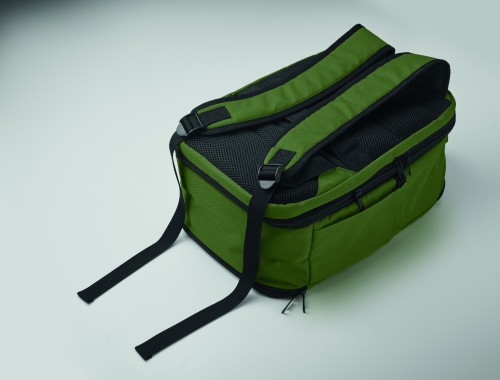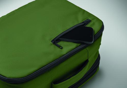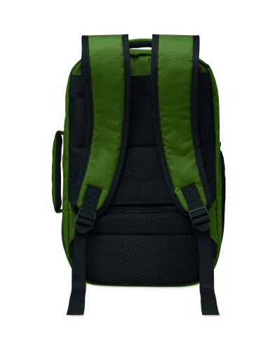 "Cabin-size carry-on extendable backpack made of 600D RPET polyester with 180o opening. Features a main compartment with two open sections, mesh division, padded 15"" laptop pocket, and luggage strap."