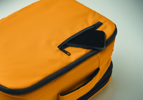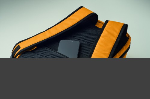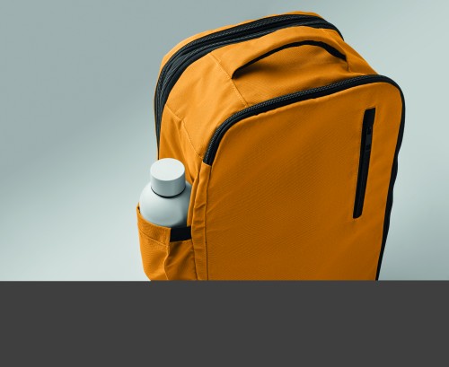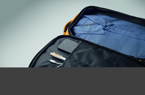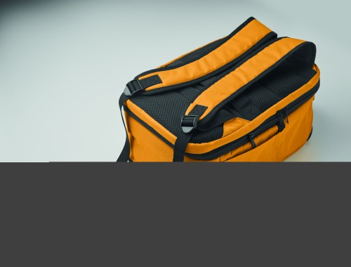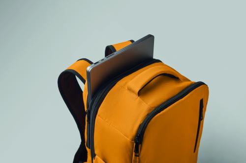 "Cabin-size carry-on extendable backpack made of 600D RPET polyester with 180o opening. Features a main compartment with two open sections, mesh division, padded 15"" laptop pocket, and luggage strap."