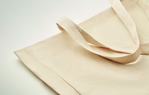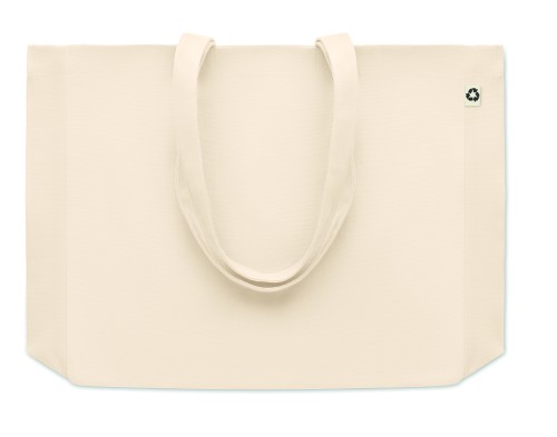 Recycled canvas shopping bag or beach bag, 50% cotton and 50% recycled cotton with long handles and gusset. 280 gr/m².