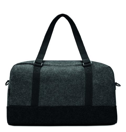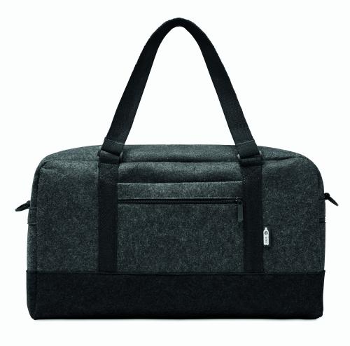 RPET felt sports/fitness or weekend bag with zippered front pocket, canvas handles and detachable adjustable shoulder strap.