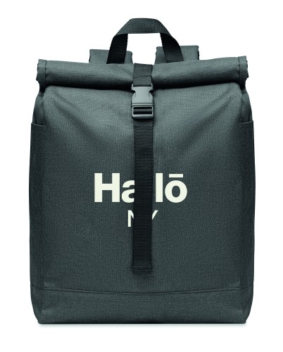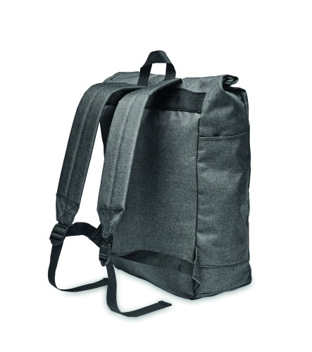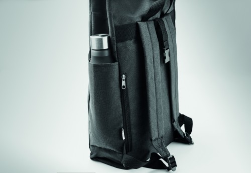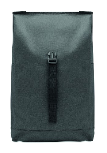 Backpack in 600D RPET 2 tone polyester with roll top closure.