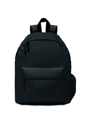 Backpack in 600D RPET polyester with outside pocket with zipper. Padded back and has a side bottle compartment.