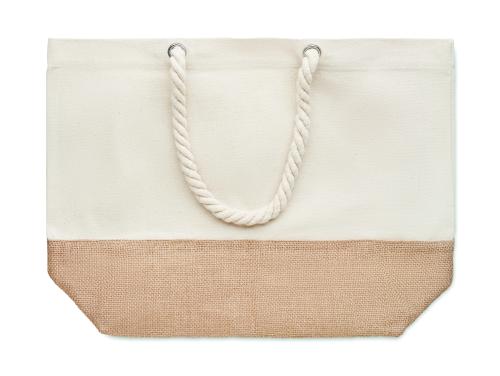 Beach bag or shopping bag in canvas with cord handle and jute detail. 280 gr/m².
