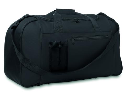 Sport or travelling bag in 600D polyester with front pocket and adjustable and detachable shoulder strap.