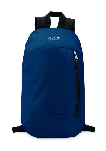 Backpack in 600D polyester with zippered outside pocket and for comfort a padded back section in 210D polyester.