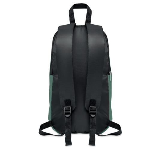 Backpack in 600D polyester with zippered outside pocket and for comfort a padded back section in 210D polyester.