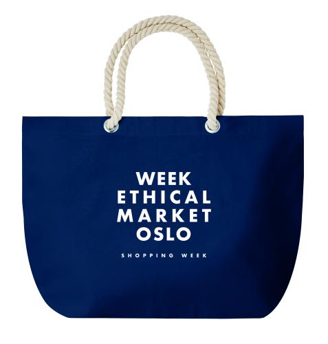 Beach bag or shopping bag in cotton with cord handle. 220 gr/m².