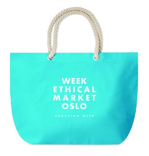 Beach bag or shopping bag in cotton with cord handle. 220 gr/m².