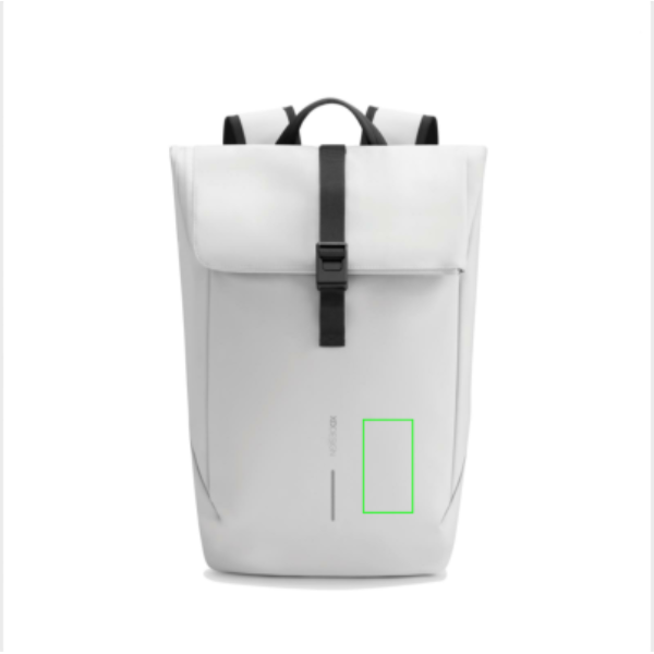 Experience versatile, all weather design and enhanced security with Urban backpack. Its unique L shaped wide opening main compartment,complete with an expandable section and ample space for a 16 inch laptop, offers effortless access to your essentials. The anti theft design, coupledwith a self locking metal zipper puller, ensures that your belongings remain safe. The addition of a rear pocket and a dedicated water bottle pocketbrings convenience to your daily adventures, making it the ideal companion for urban explorer. This backpack is not only water repellent, it's durable and stylish. Crafted with Aware ™traceable recycled polyester and finished with a soft touch PU coating, perfect for any occasion. 17% recycledcontent. Registered design®