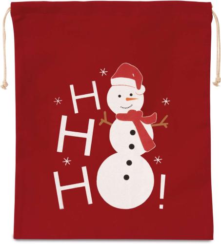 COTTON BAG WITH SNOWMAN DESIGN AND DRAWCORD CLOSURE
