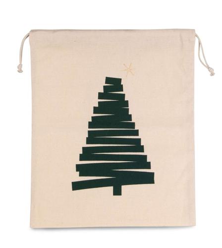 COTTON BAG WITH CHRISTMAS TREE DESIGN AND DRAWCORD CLOSURE
