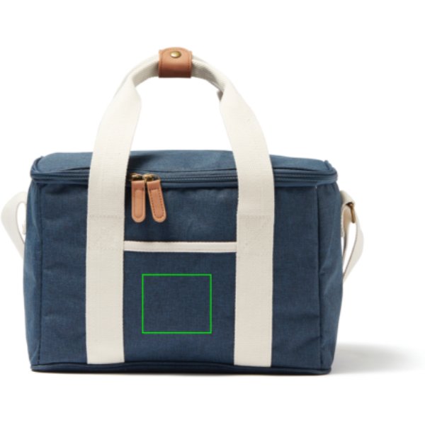 The ultimate cooler basket, mottled tone by tone with details in imitation leather and cotton. There is also a small compartment on the outside of the cooler bag, providing space for other items as well. The thick PEVA padding ensures that the cold is retained for a long time. It is also easy to clean and dry after use. Thanks to the adjustable shoulder strap and the double handle, you have several ways to carry the cooler basket.