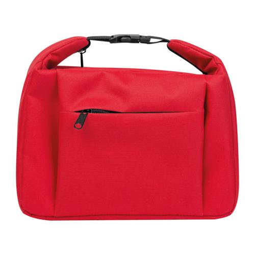 Cooler bag made from recycled polyester (RPET) with front zipper pocket, 5-liter capacity.