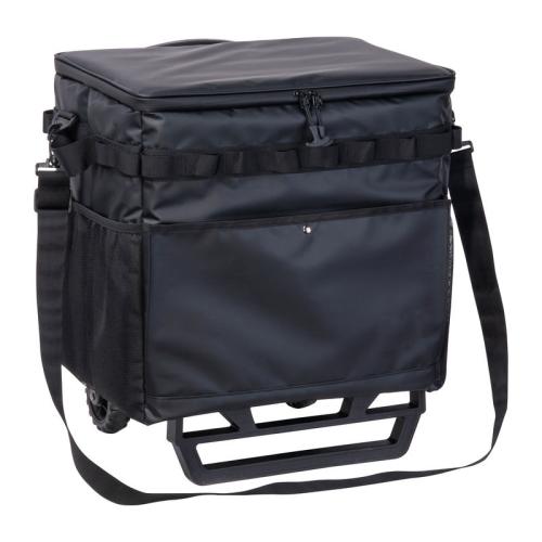 Large cooler trolley with a 35-liter capacity and a waterproof zipper. The cooler bag is detachable, and the frame can be folded to save space.