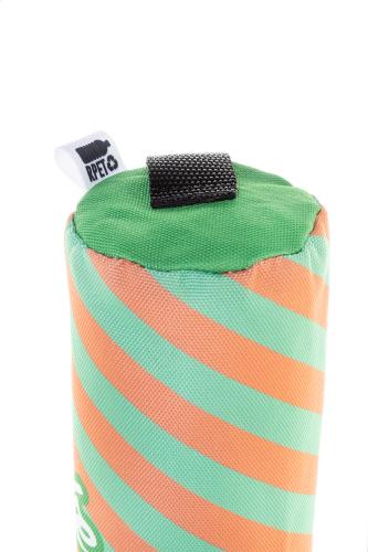 Custom made, can holder bag in 600D RPET polyester with zipped compartment and adjustable shoulder strap. With all over sublimation printed graphics and distinctive RPET label. Fits 5 pcs of 0,33 L standard-type aluminium cans. MOQ: 25 pcs.