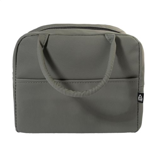 Zipped, soft recycled PU leather cooler bag with front pocket and aluminium padding. With distinctive recycled PU label.