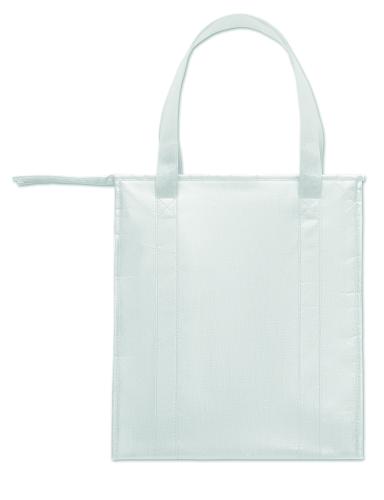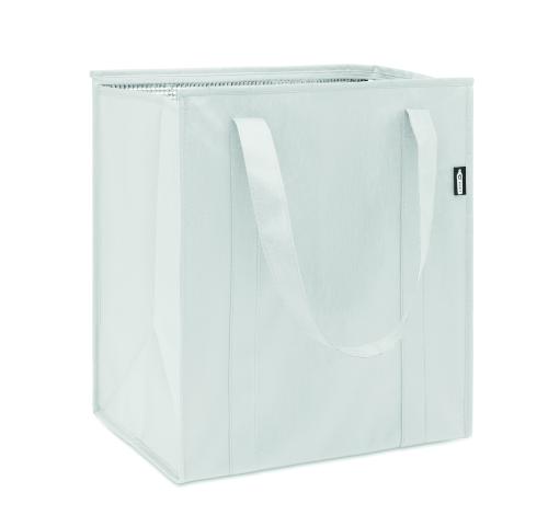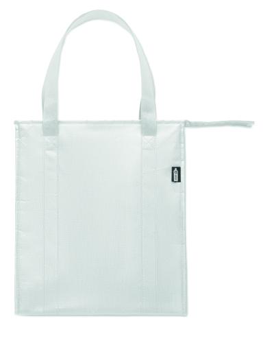Cooler bag in RPET non-woven 80gr/m². Isolation material: aluminium foil. Capacity 25L. Main compartment with zipper on top.