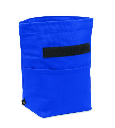Recycled cotton (70% recycled cotton, 30% recycled polyester) insulated lunch cooler bag with rolltop hook and loop closure. Insulation: 3mm PE foam with 12C PEVA.