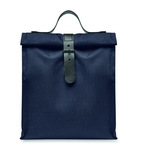 600D RPET polyester insulated roll top lunch cooler bag with PU handle and closure. Insulation: 3mm PE foam with PEVA.