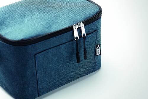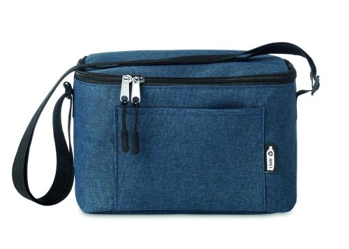 Cooler bag for 6 cans in 2 tone 600D RPET and front pocket. Capacity 3L. Isolation material: 0.15mm PEVA + 3mm foam.