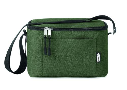 Cooler bag for 6 cans in 2 tone 600D RPET and front pocket. Capacity 3L. Isolation material: 0.15mm PEVA + 3mm foam.