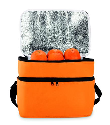 600D Cooler bag with 2 compartments and aluminium foil lining. Adjustable shoulder strap.