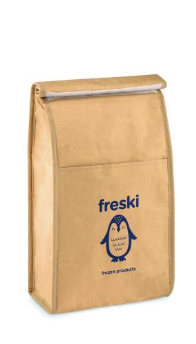Woven recycled paper woven cooler lunch bag with front pocket. Isolation material: PE foam layer. Capacity 3L.