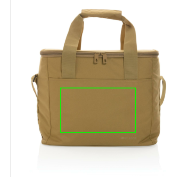 Pack your favourite food or beverages in this cooler bag! This beautiful large cooler bag can store up to 20 cans. With one front pocket for extra storage. All the hardware details are in the same colour as the exterior. Incorporating the AWARE™ tracer that validates the genuine use of recycled materials. Each cooler bag reused 10.3 PET bottles. 2% of proceeds of each Impact product sold will be donated to Water.org. Composition exterior 100% recycled polyester. Lining in PEVA.