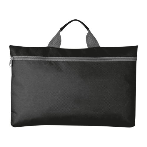 Conference bag made of sturdy polyester with zipper and handle.