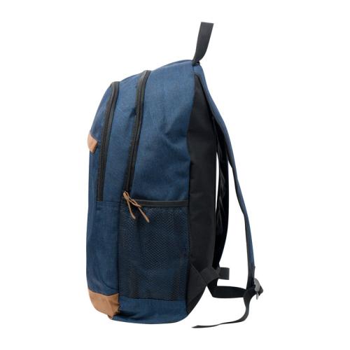 600D polyester backpack with suede-look contrasting bottom and closing strip, with hanging loop, shoulder straps, a front compartment and a filling capacity of 29 liters.