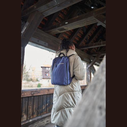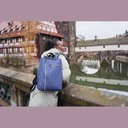 High-quality, waterreppelant nylon backpack with padded shoulder straps, handles, USB port, two lockable front pockets. a laptop compartment for 15.6 inch laptops and a filling capacity of 13 liters.