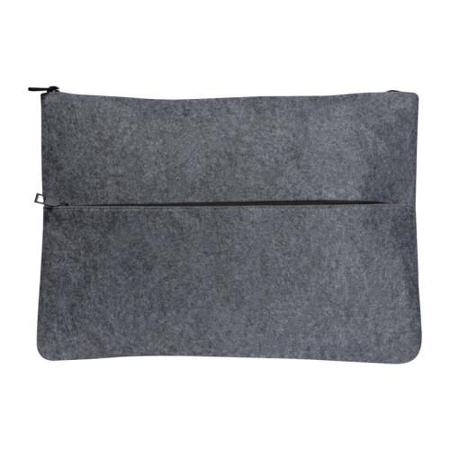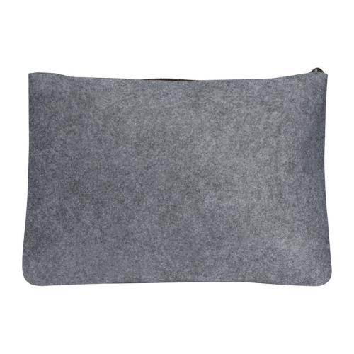 Document bag made of recycled felt with black zips, suitable for laptops.