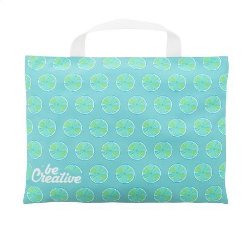 Custom made, zipped document bag in polyester. With all over sublimation printed graphics. MOQ: 25 pcs.