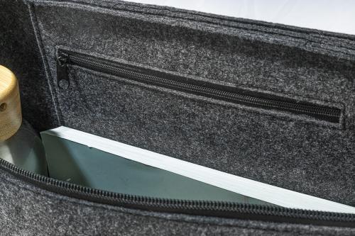 RPET felt document or laptop bag with zipped main compartment and zipped inside pocket. Fits laptops up to 15". With distinctive RPET label.