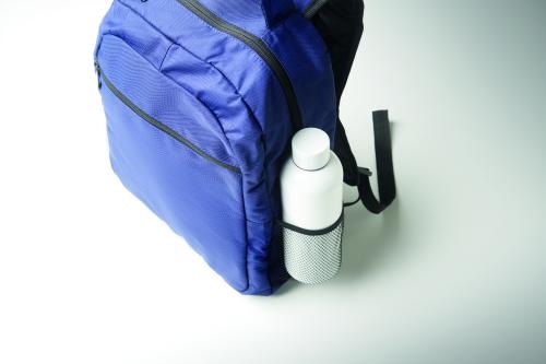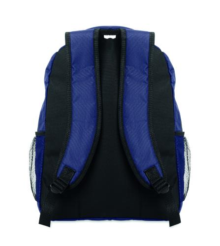 Laptop backpack 15inch in 600D RPET polyester with padded laptop compartment inside, mesh pockets on both sides and zippered front pocket.
