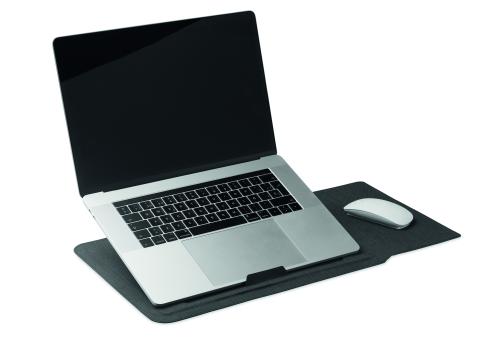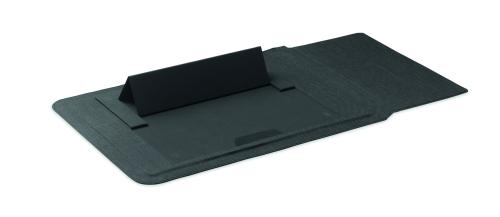 3 in 1 16 inch RPET laptop sleeve with laptop stand and mouse pad functionality when unfolded.