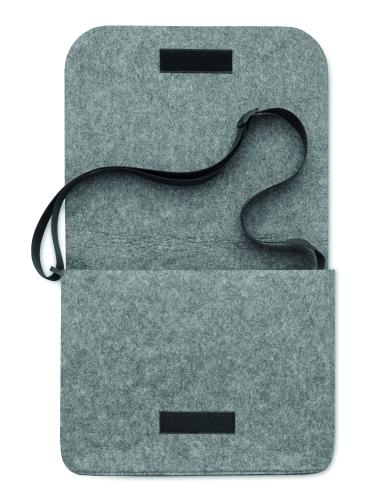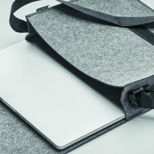 RPET felt messenger or laptop bag with hook and loop closure. Fits a 15 inch laptop.