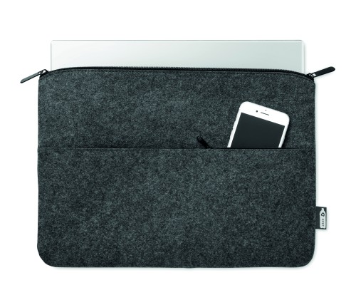 RPET felt 14 inch zippered laptop bag with zippered front pocket.